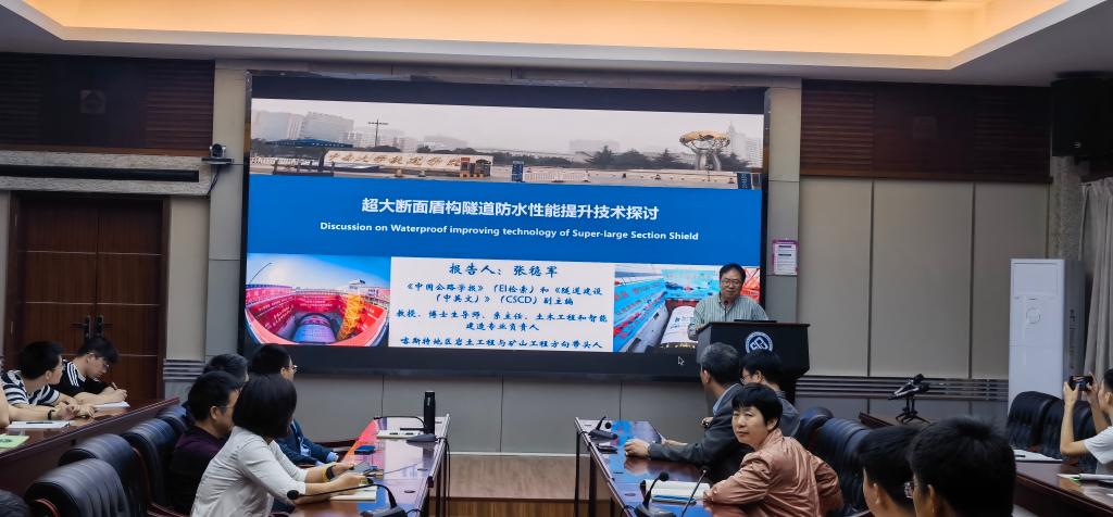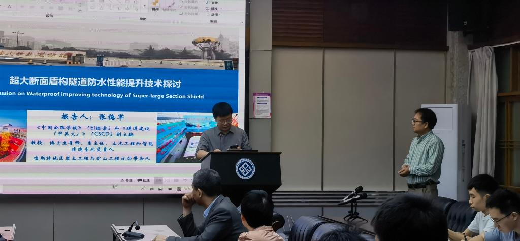 随后,在世纪楼14楼会议室张稳军教授为beat365官网师生作了题为《超大断面盾构隧道防水性能提升技术探讨》的学术论坛报告。报告介绍了其团队在盾构隧道防水性能提升、掘进精准动态纠偏、结构安全与智能评估三方面取得的研究成果。报告会由beat365英国官方网站副院长雷明锋教授主持。