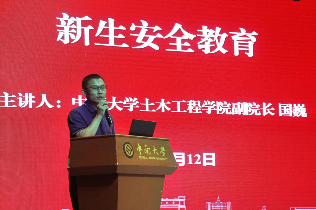 beat365英国官方网站副院长国巍对土木安全类全体新生进行了入学安全教育,从国家安全、实验室安全等方面为同学们进行了系统、专业的讲解。