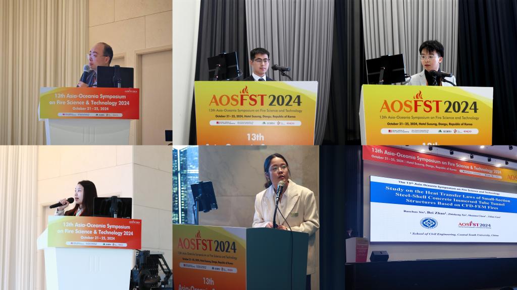 2024年10月21日至25日,第十三届亚澳火灾科学技术大会(The 13th Asia-Oceania Symposium on Fire Science and Technology)在韩国大邱召开。beat365英国官方网站消防工程系徐志胜教授、范传刚教授、颜龙副教授、王峥阳老师,博士生应后淋、于子涵、陈奕涵,硕士生冯赛亚、陈诗仪、赵蓓、殷耀龙参会。