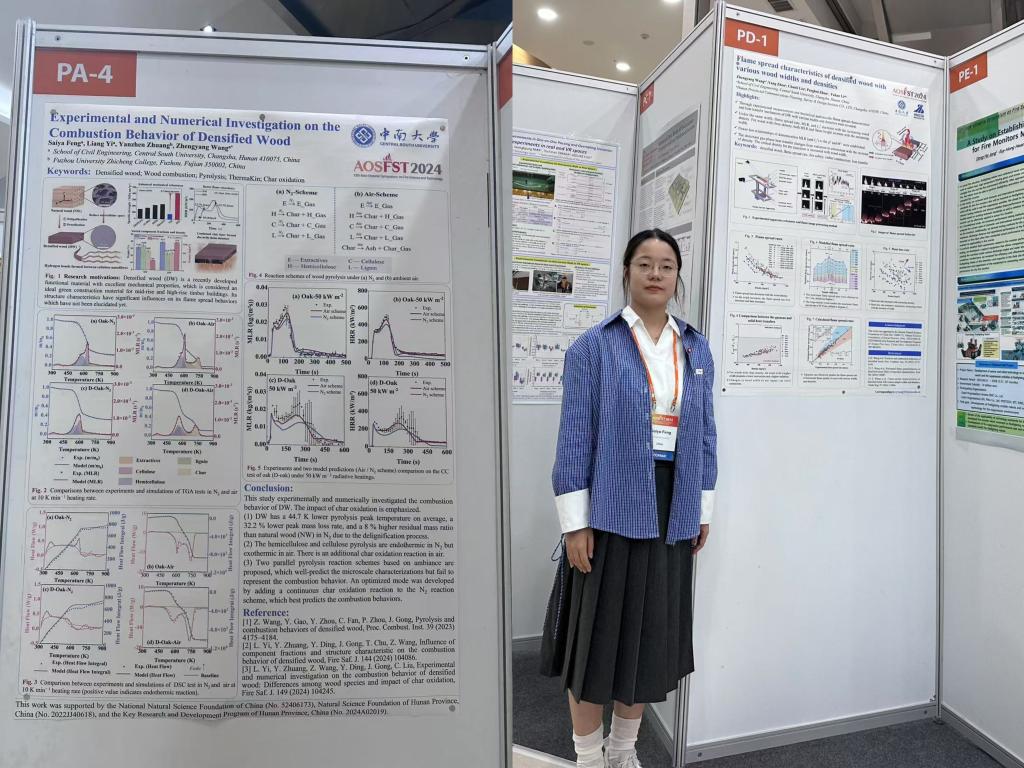 会议期间,beat365英国官方网站消防工程系共展出4张海报,涵盖了固体火蔓延、致密木材的阻燃性能模拟、致密木材的开裂研究、火灾风险识别算法4个不同的主题,硕士生冯赛亚在场为国内外研究人员讲解展示。