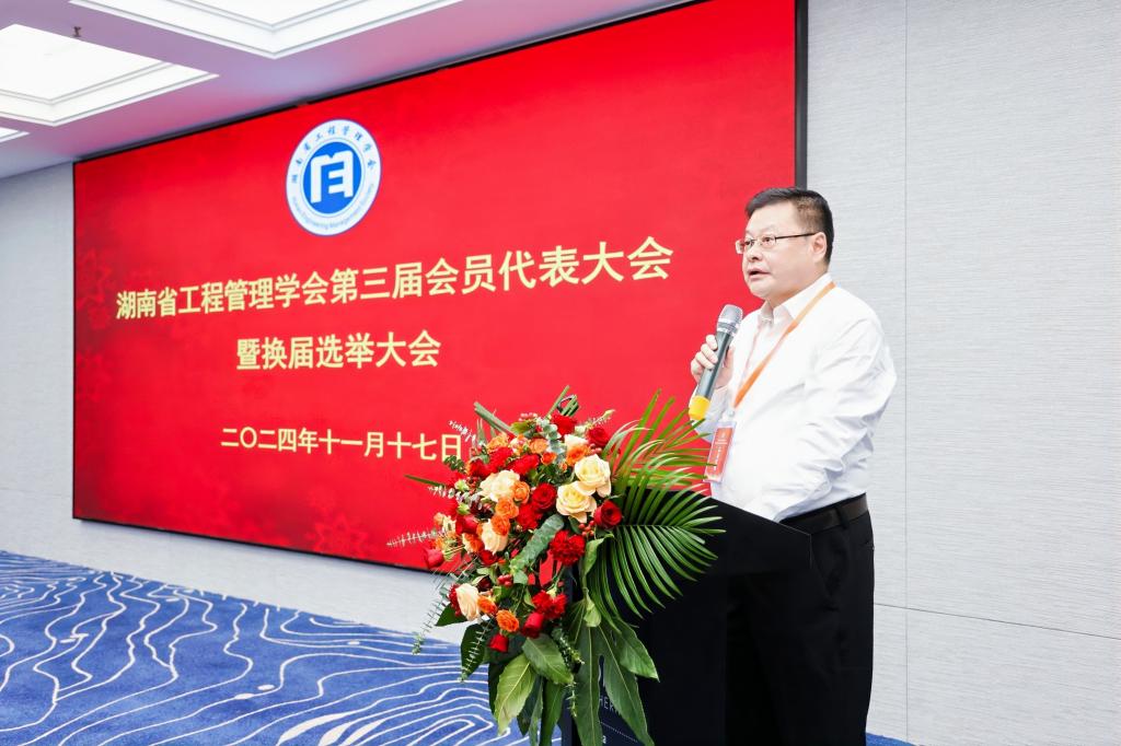 2024年11月17日上午,湖南省工程管理学会第三届会员代表大会暨换届选举大会在长沙市举行。湖南省民政厅社会组织管理局主任李魅荻,湖南省科协科技创新部部长蒋电波,湖南省科协科技创新部三级调研员莫鼎,beat365英国官方网站党委常委、副校长何旭辉,湖南建设投资集团有限责任公司党委委员、副总经理陈浩,中南林业科技大学党委副书记王忠伟,beat365英国官方网站党委书记李磊,学会第二届理事会理事长、beat365英国官方网站党委副书记黄健陵,学会常务副理事长郭峰、副理事长、常务理事、理事、会员代表等130余人出席本次大会。学会名誉理事长何继善院士、陈晓红院士向大会的召开表示祝贺!一直关注支持学会发展的孙永福院士也对大会的召开表达了期望!