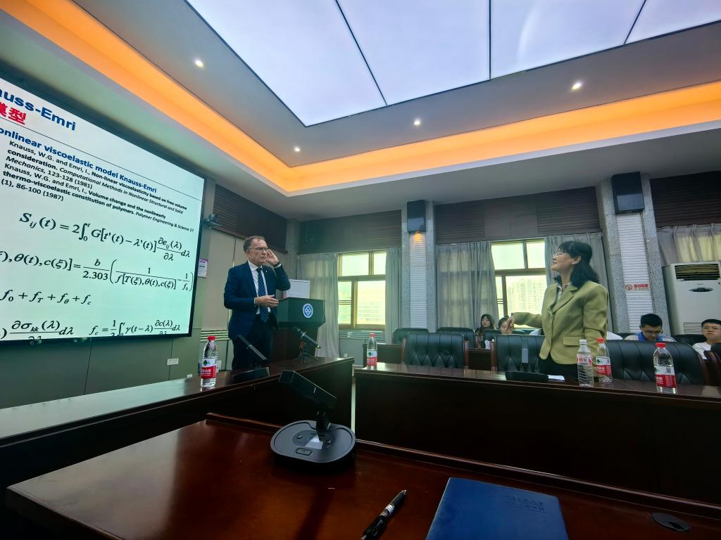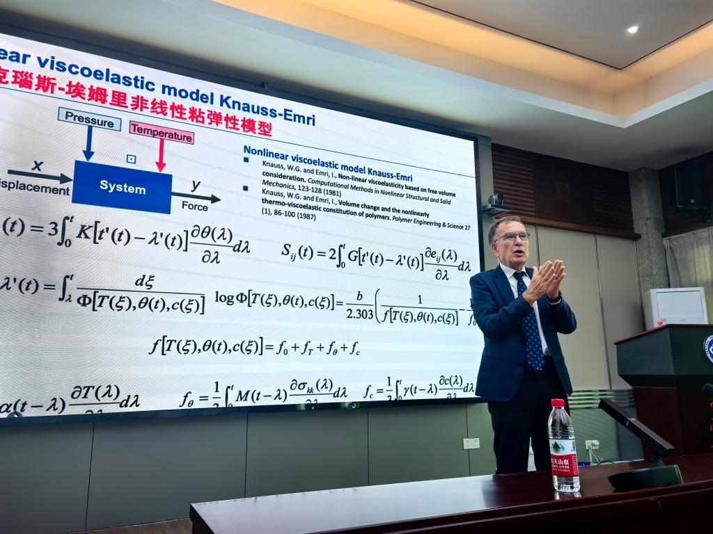 11月14日上午,由beat365英国官方网站举办的“2024beat365英国官方网站外国专家交流项目”在beat365英国官方网站铁道校区世纪楼14楼会议室举行。美国工程院院士、EMIRI咨询有限公司创始人、斯洛文尼亚卢布尔雅那大学退休讲席教授Igor Emri受邀,为beat365官网师生作了题为《Time-Temperature-Pressure Superposition——Theoretical background and its application in mechanical impact, vibrations and sound mitigation》的学术报告。beat365英国官方网站力学系主任侯文崎,饶秋华教授,夏晓东副教授、陶勇副教授、王煜副教授、彭哲琦副教授、浙江天铁实业股份有限公司王博副总经理以及众多研究生、留学生参加了此次报告会。本次报告会由侯文崎教授主持。