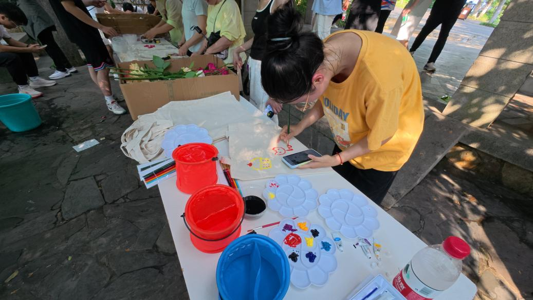 活动中,老师们全程参与,与青年学子交流学术心得、畅谈职业规划。师生在沿途参与帆布袋创作活动,拓印、涂鸦,在艺术实践中展现土木学子的创新思维与工匠精神。