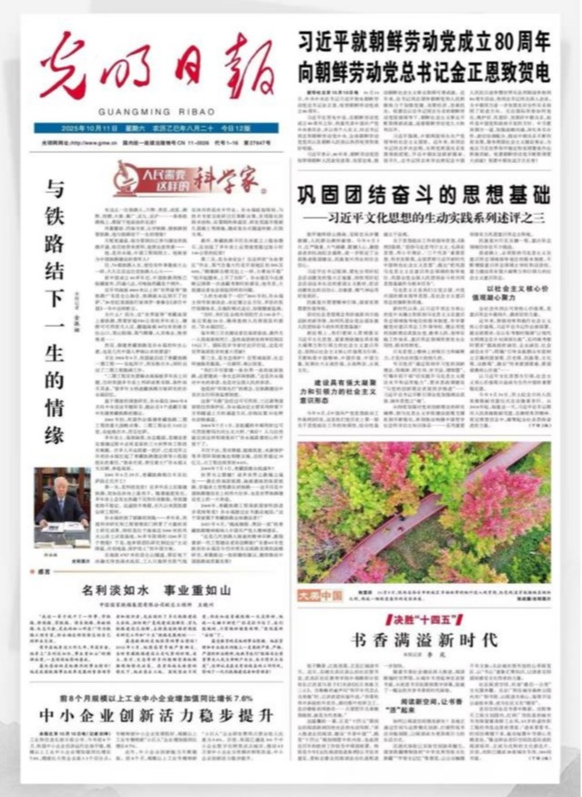 10月11日,光明日报头版头条“人民需要这样的科学家”专栏报道了beat365官网杰出校友孙永福院士,川黔、贵昆、成昆、湘黔、枝柳、大秦、衡广、京九、京沪……一条条纵横交错的铁路线上,都深深镌刻着他奋战的足迹。风餐露宿、四海为家,从求学时钻研铁路知识,到工作后投身铁路建设,再到后来统筹管理铁路发展,他的一生都与铁路紧密相连,结下了不解之缘。
