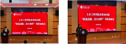活动伊始,雷明锋代表学院向考研学子送上祝福。他强调考研能够磨练心态,希望大家要有“强大心脏”,心态决定成败,坚持创造机会。他还结合自身求职、考博等亲身经历告诉大家,人生是多元的,总是螺旋式上升、曲折式前进,要深挖自身潜力,以积极之姿直面挑战,始终坚信“只要热爱生命,一切都在意料之中”,鼓励大家调整好心态,顺利迈过考研这道坎。话语真挚有力,赢得同学们阵阵掌声。