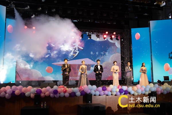 此次晚会,以“土木17”元素构成的“梦”字作为主线,体现土木学子为祝福祖国建党百年实现伟大中国梦的精神风貌。晚会乘坐着宣传片的时光机回顾丰富的四年大学生活,节目共分为三章:“拾梦”、“筑梦”和“追梦”,凸显毕业生们从大一的青涩走向成熟,经历成长,砥砺前行,赤子追梦的决心。在晚会开始前,各班的笑脸照视频和毕业季原创MV《去·来》的播放奠定了晚会温暖又感动的氛围。主持人合唱一首《奇迹再现》,炫酷开场,点燃了在座观众的热情,在全场欢呼中,晚会正式拉开序幕。