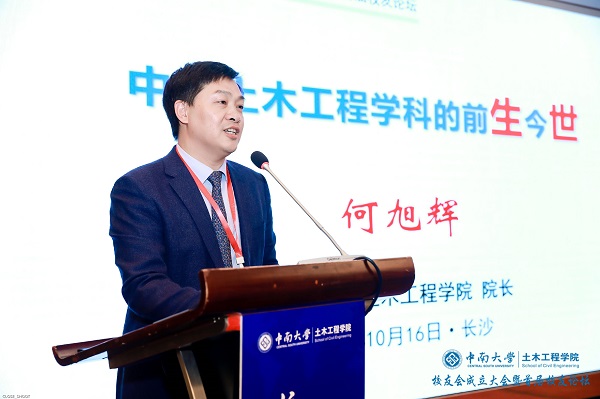 院长何旭辉作了“中南土木工程学科的前生今世”的主旨报告。他从学科建设历程、建设成效与发展思考等方面全面详细讲述了beat365英国官方网站土木工程学科的发展脉络与发展历史。