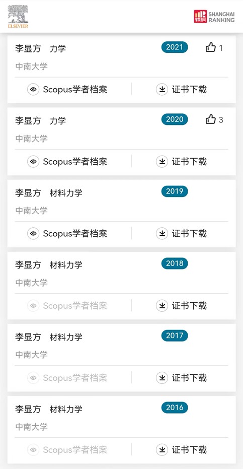 据悉,2021年中国高被引学者榜单国内共有来自523个高校、科研机构和企业的4701位学者入选,覆盖了教育部10个学科领域、84个一级学科。中国高被引学者的筛选标准客观统一,从纯学术影响力的角度给出中国的高被引学者名单,是软科中国最好大学排名中单项指标“顶尖学者”的重要参考。入选高被引学者榜单,意味着该学者作为第一作者和通讯作者发表论文的被引总次数在本学科的所有中国(大陆地区)研究者中处于顶尖水平,在其研究领域具有世界级影响力,其科研成果为该领域发展做出了较大贡献。
