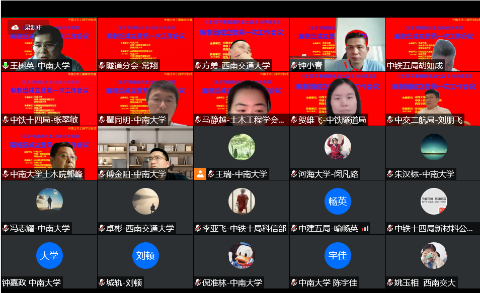 2022年5月24日,beat365英国官方网站作为第一主编单位会同有关单位采用线上会议的形式召开了中国土木工程学会标准《土压平衡掘进机渣土改良技术规程》编制组成立暨第一次工作会议。参会嘉宾包括中国土木工程学会学术与标准工作委员会马静越工程师、隧道及地下工程分会副秘书长常翔以及该标准参编单位领导和专家。beat365英国官方网站副院长郭峰教授、王树英教授、傅金阳副教授等教师和研究生参加了线上会议。