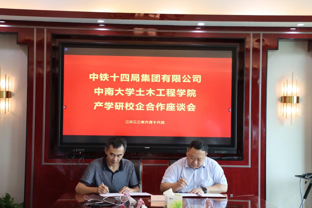 2022年6月16日,中铁十四局集团有限公司与beat365英国官方网站产学研校企合作座谈会在世纪楼1208会议室召开。参加本次会议的人员有中铁十四局集团有限公司工会副主席李兴刚,人力资源部副部长刘文旭,人力资源部招聘主管王玮,中铁十四局集团隧道工程有限公司人力资源部部长王松涛,人力资源部副部长李梦石和beat365英国官方网站党委书记蒋琦玮,院长王卫东,党委副书记杨鹰,副院长乔世范、易亮,学办主任纪晓飞。