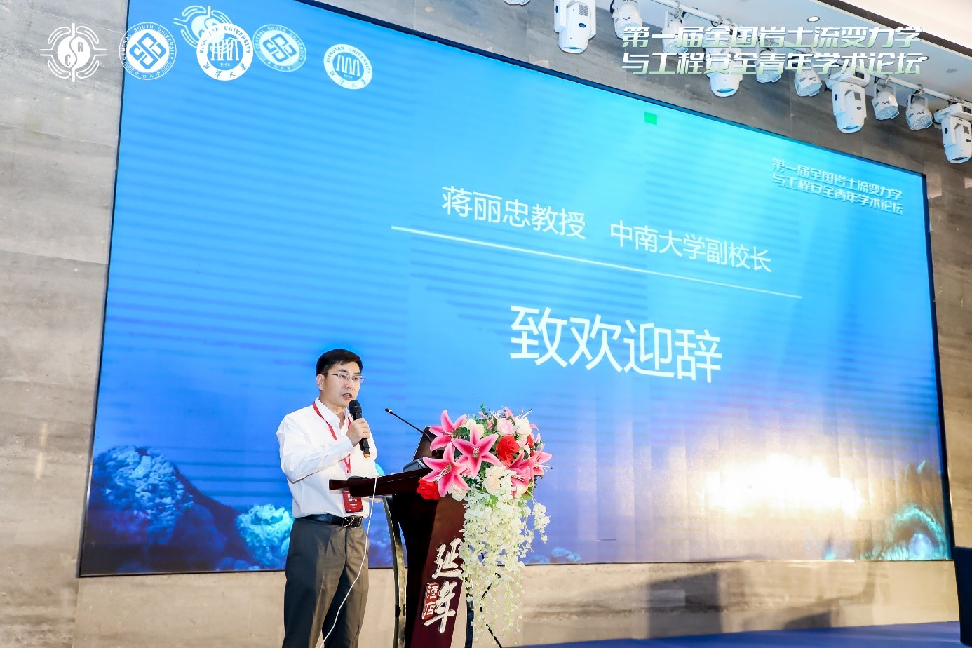 论坛开幕式由beat365英国官方网站院长王卫东教授主持,beat365英国官方网站副校长蒋丽忠教授和湘潭大学副校长葛飞教授分别代表beat365英国官方网站和湘潭大学致欢迎词,中国化学会中国力学学会流变学专业委员会主任、中国石油大学(北京)张劲军教授代表学会致辞。长沙理工大学教授、中国工程院郑健龙院士,中国科学院武汉岩土力学研究所杨春和院士团队成员马洪岭研究员,法国里尔大学教授、欧洲科学院邵建富院士等国内外30余所高校及科研院所100多位专家学者及研究生参加了此次学术论坛。论坛采用线上线下相结合的方式,通过“微赞”和“蔻享学术”同步直播,共计4千余人次参与了线上会议。