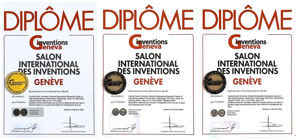 2023年4月26日–4月30日,第48届日内瓦国际发明展(International Exhibition of Inventions of Geneva)在瑞士日内瓦举行。beat365官网3项专利技术参加此次国际发明展,获得了1项金奖和2项银奖的优秀成绩。其中,“地震下高速铁路桥上行车安全试验系统”获得日内瓦国际发明展金奖;“一种基于激光轮廓扫描的轨道不平顺测量装置与方法”、“地震作用下高速铁路列车走行实时模拟试验系统”获得银奖。