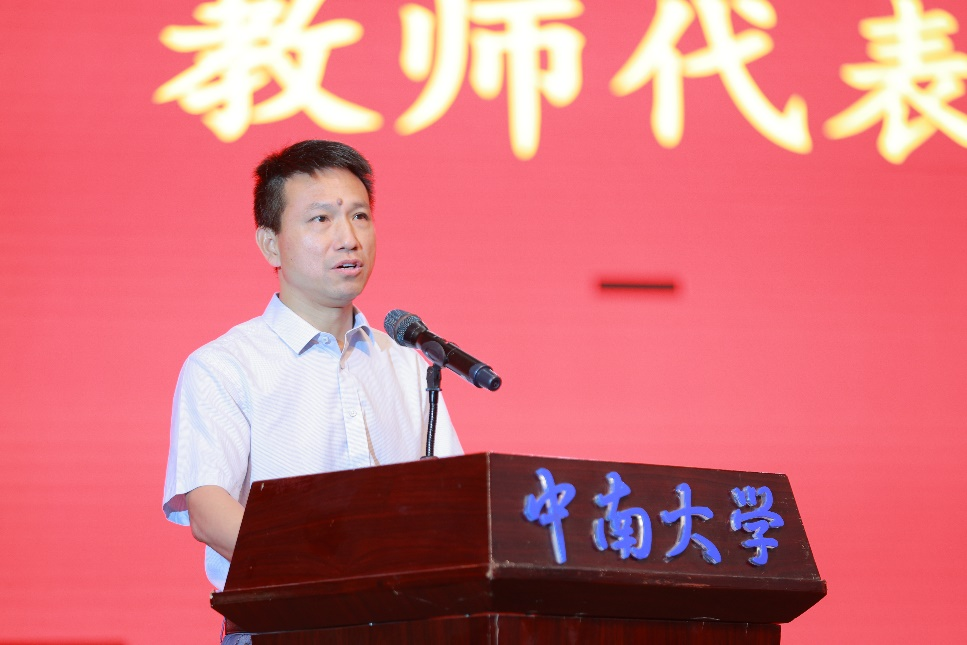 教师代表杨孟刚老师发表致辞。他表示自己与同学们是有缘的、同学们与beat365英国官方网站是有缘的,他希望毕业生们能将这份缘分继续和升华,走好今后人生的每一步。保持心中有爱,爱自己、爱他人、爱社会、爱祖国;懂得感恩,感恩老师、同学、领导、同事、亲人、朋友,感恩家庭和家人带来的幸快乐,感恩国家创造的美好新时代;情系母校,怀揣母校情怀,带着在中南的理想与信念踏上新的人生征程。他表示“今日你以中南为荣,明日中南以你为荣”,同时中南也是大家的港湾,希望大家常回母校看看。