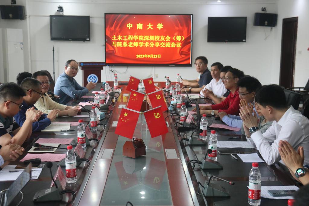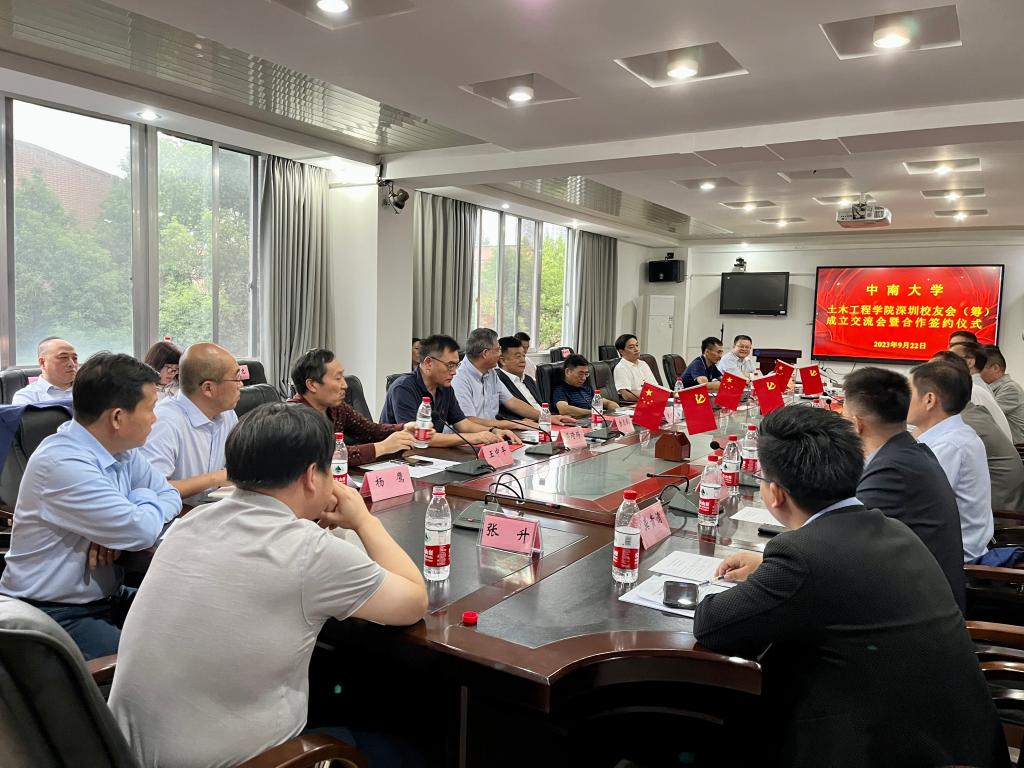 2023年9月22日至23日,beat365英国官方网站深圳校友筹备委员会一行16位校友代表回到母校,在铁道校区红楼一号楼三楼会议室举行了beat365英国官方网站深圳校友会(筹)成立交流会暨合作签约仪式。中南大学党委副书记黄健陵,副校长蒋丽忠,原beat365英国官方网站党委副书记陈治亚,高速铁路建造技术国家工程中心主任余志武,beat365英国官方网站本科生院长、beat365英国官方网站校友会会长何旭辉 ,beat365英国官方网站校友总会副秘书长王中平,院党委书记、院教育基金管理委员会主任蒋琦玮,院长、院校友会副会长王卫东,院党委副书记、院校友会副会长杨鹰,副院长乔世范,副院长张升及部分理事出席此次会议。会议由学院副院长、院校友会常务副会长郭峰主持。