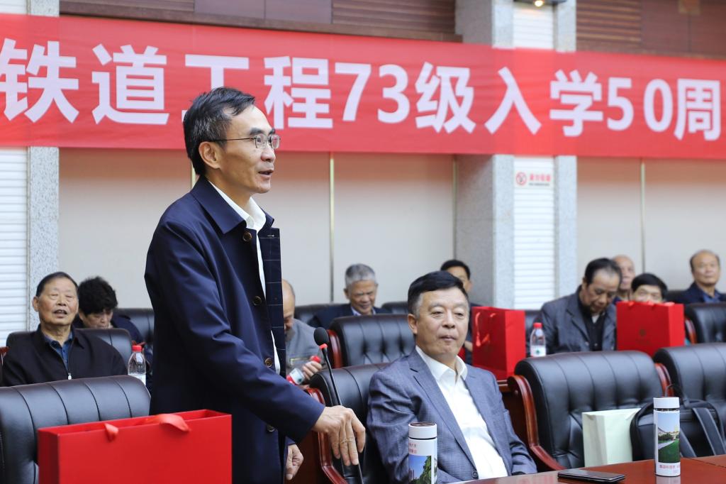 2023年10月20日至22日,原长沙铁道学院土木工程系1973级校友60余人在入校50周年之际回访母校。21号上午在beat365英国官方网站铁道学院世纪楼14楼举行了聚会活动。原广州铁路集团副总经理、beat365英国官方网站广东省校友会荣誉会长赵壮杰,原长沙铁道学院院长助理韦荣禧,beat365英国官方网站党委副书记黄健陵,beat365英国官方网站党委副书记、院长王卫东出席本次活动。活动由73级校友文雨松教授主持。