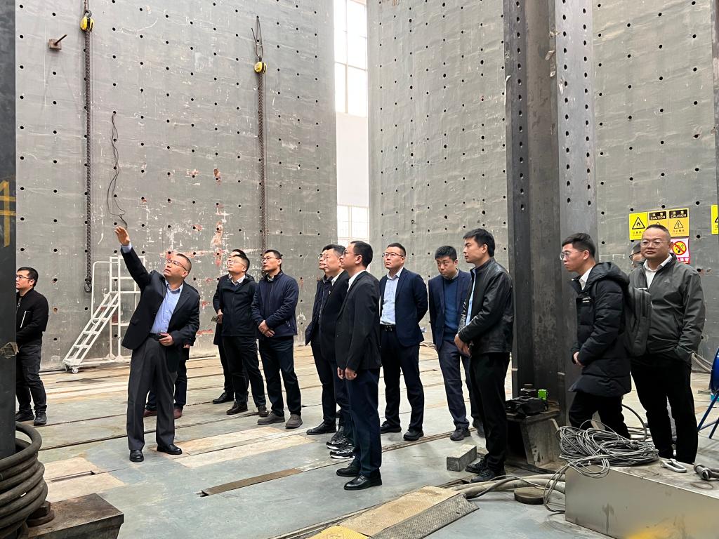 王卫东院长向前来调研的同志们表示了欢迎,并邀请陈浩副总经理一行参观考察了beat365英国官方网站高铁建造技术国家工程研究中心。湖南建投集团领导在2号楼试验大厅对钢结构模块单元房抗震性能试验进行了现场指导,周凌宇教授就湖南建投集团代表们的提问一一进行了解答。