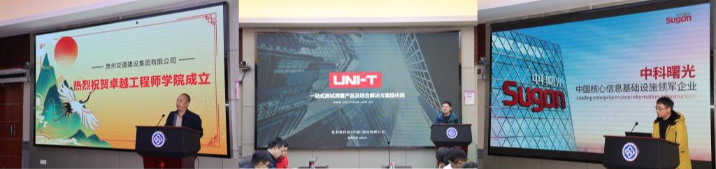 贵州交通建设集团有限公司胡涛,优利德科技(中国)股份有限公司金战华,曙光信息产业股份有限公司曾祥瑞等作为企业嘉宾代表依次发言,从自身企业科技攻关、人才培养、与beat365英国官方网站的前期合作等角度向参会的领导老师与嘉宾表达了对校企合作的认同赞许与深化合作的意愿。