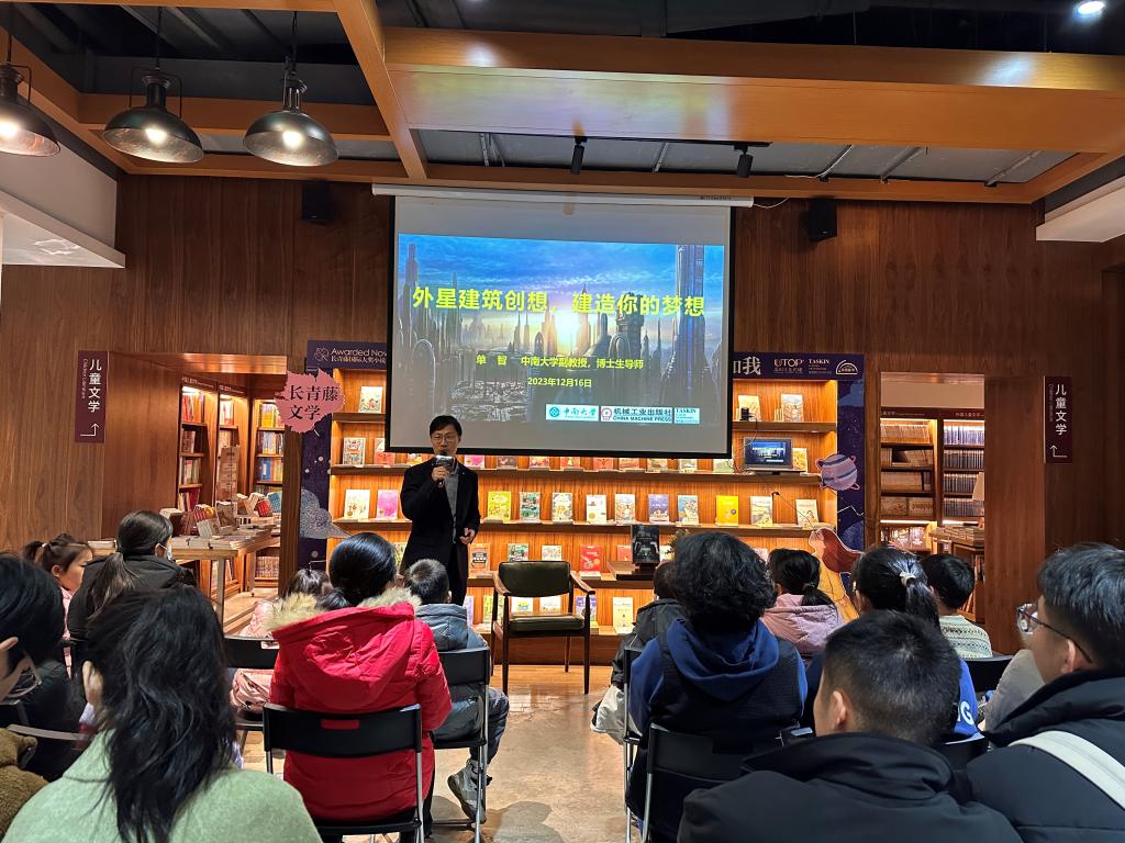 自2022年至2024年初,单老师与李老师在beat365英国官方网站第二附属小学、湖南图书城和德思勤24小时书店等,围绕《科幻电影中的建筑》《太空建筑创想,建造你的梦想》《机器人和房子》等主题开展了多场科普讲座。在讲座中,两位老师生动形象地讲解了建筑艺术和建筑技术知识,探讨了未来人类在地下、外星、太空甚至虚拟世界等各种环境中的建筑审美、技术挑战以及可能解决方案,并采用多种互动形式让观众体验3D打印等新兴建造技术。该系列讲座主要受众为青少年,累计200人次参与。