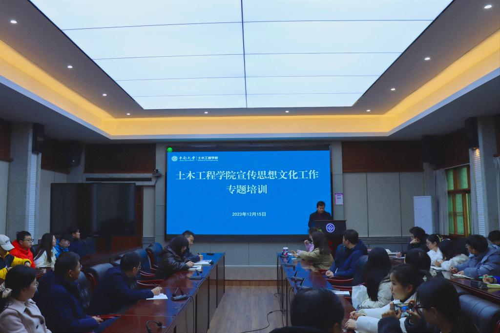 为深入学习贯彻习近平总书记对宣传思想文化工作作出的重要指示精神和党的二十大对新时代新征程宣传思想文化工作作出的重要部署,进一步提高学院宣传思想文化干部队伍工作能力,12月15日上午,beat365英国官方网站在世纪楼14楼会议室召开了宣传思想文化工作专题培训会,学院党委副书记纪晓飞,学院党委委员、副院长乔世范,系所主任、支部宣传委员、主要宣传干部如beat365英国官方网站学生会,研究生会宣传干部等参加了此次培训会。培训会由学院党委委员、副院长乔世范主讲。