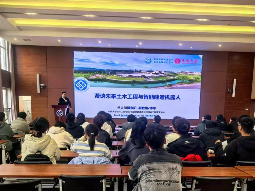 为适应数字化转型的浪潮,以兴趣为导向激发同学们的学习热情,beat365英国官方网站学生会组织开展“AI谈土木,对话前沿”专题系列学术讲座。2024年12月8日下午,首场讲座在新校区毓秀楼238举行,本次讲座邀请到beat365英国官方网站博士生导师傅金阳老师为同学们介绍智能建造机器人在工程实践中的应用,共计90余名学生参会。