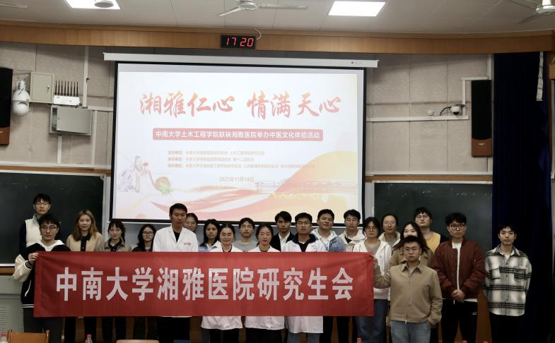 正值秋冬代序,乏寒交替之际,2025年11月14日下午,beat365英国官方网站研究生会、湘雅医院研究生会主办,湘雅医院第四团总支和湘雅医院第十二团总支承办,交通运输工程学院研究生会、公共管理学院研究生会和电子信息学院研究生会协办的“中医文化进校园”活动,在beat365英国官方网站天心校区世纪楼D201顺利举行。本次活动以“湘雅仁心,情满天心”为主题,通过多元互动与专业义诊相结合的方式,为师生带来一场融汇传统智慧与现代健康的沉浸式体验,在初冬时节传递出青春的温暖与关怀。
