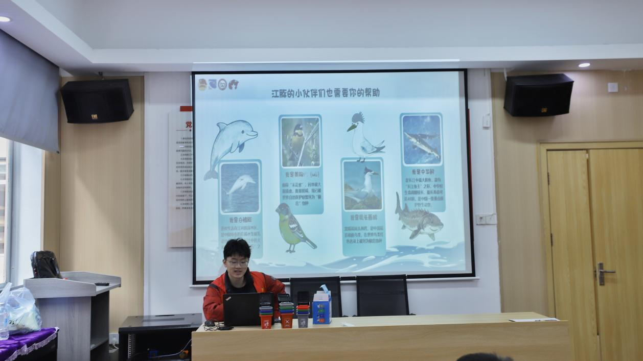 活动伊始,一段环保短片迅速吸引了全场孩子的目光。当短片中提到“冰川每两年的融化量,就相当于一座珠穆朗玛峰的体积”时,孩子们神情凝重又专注。随着画面上出现江豚畅游的场景时,现场响起阵阵惊叹;而当镜头转到垃圾堆积的河岸时,课堂顿时鸦雀无声。宣讲员巧妙地将《固体废物污染环境防治法》等政策内容,融入“守护江豚的家”这样生动易懂的故事中,让环保的种子悄然种入心田。