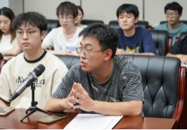 交流环节,学生干部代表依次发言,复盘工作、建言献策。付淼全面梳理了院学生会过去一年的工作履职情况,对新一届学生干部提出期望,希望大家将党的二十届三中全会精神融入日常工作,切实把服务落到实处、做到细处。宋昱霖结合自身工作经历,提出团学干部要不断提升自身综合素养,夯实履职根基,合理统筹学业发展与学生工作的关系。肖天宇围绕研究生会工作提质升级,明确将从学术赋能、活动创新、思想引领、规范管理四个维度开展工作,为学院培育新质生产力相关工作注入青春动能。刘盛龙表示,将着力推动各团组织间的深度协作,持续优化工作方法、提升工作效能,切实把全会关于深化党的建设制度改革的要求落到实处。