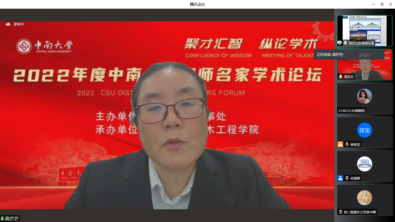 2022年4月17日下午,由学校人事处主办,beat365英国官方网站承办的“beat365英国官方网站名师名家学术论坛”邀请到中国铁路科学研究院学术委员会委员、beat365英国官方网站兼职教师高芒芒与师生进行线上报告交流,报告题目为《高速铁路大跨度桥梁现存问题及解决方案探讨》。beat365英国官方网站院长何旭辉主次本次会议,相关系所老师及学生二百多人参加此次会议。