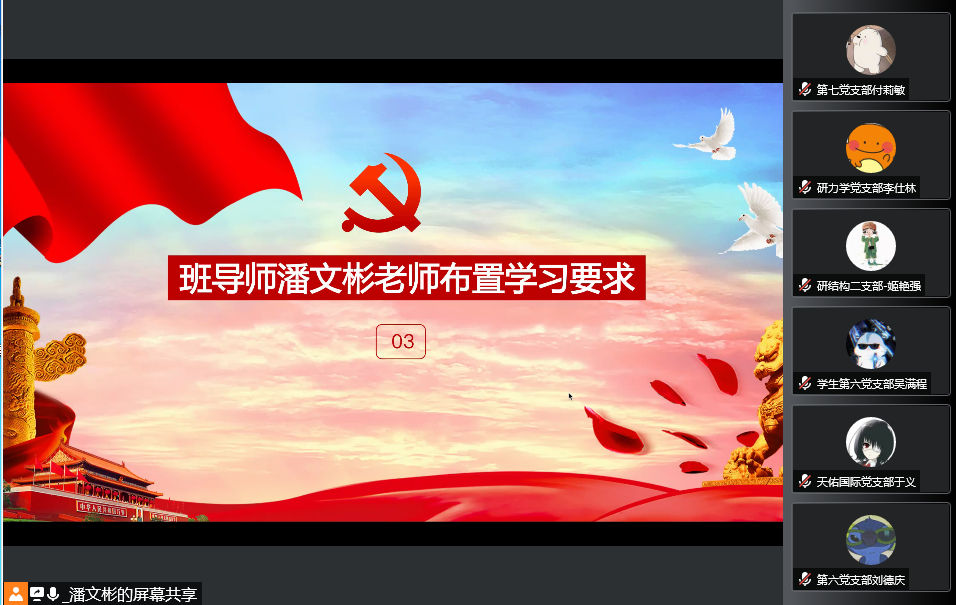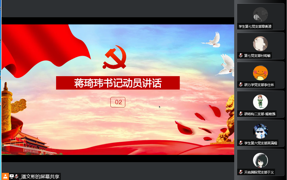 2022年4月20日下午15时,beat365英国官方网站党校beat365英国官方网站分党校召开了第14期发展对象培训班开班典礼。为响应学校疫情防控要求,本次开班典礼通过腾讯会议在线上举行。本次开班典礼由发展对象培训班班导师王帅主持,土木院党委书记蒋琦玮、发展对象培训班班导师潘文彬出席,全体发展对象培训班学员参加会议。