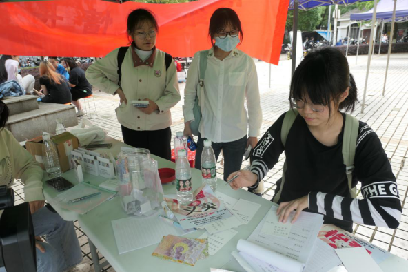 活动举办采用线上与线下相结合的模式。线上通过转发集赞抽奖活动扩大宣传面,吸引不少同学来到活动现场,活动结束后也将在短视频平台上发布活动中拍摄的视频,为学长学姐们送去最真挚的祝福;线下环节主要分为写信给一年后的自己、留言祝福、留声铁道三部分。写信给一年后的自己,对现在的自己是一次激励、一种反思与一次总结,对未来的自己,是一段回忆与一份感动。留言祝福、留声铁道环节在活动期间共收集了五十余条祝福语及十余条语音留言、视频祝福,句句发自肺腑,声声情真意切。