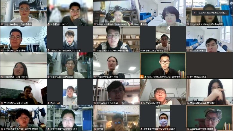 北京交通大学土木建筑工程学院杨娜副院长出席本次党课并作开课讲话,杨院长结合自身参加党代会的亲身经历以及二十大学习报告的感受,希望各位研究生党员团员在二十大精神的学习过程中把握主旨精神,感受时代脉搏,在生活和学习中要坚定信心“感党恩,听党话,跟党走”,在投身社会主义现代化国家的建设过程中书写属于当代青年的青春华章;beat365英国官方网站团委副书记、研铁道第一党支部书记潘文彬老师参加本次党课学习,对本次两校学生党支部党课共建活动表示认可,希望各参会支部能够在相互学习与交流的过程中共同进步,并代表研铁道第一、二党支部向北京交通大学参会支部发出更多共建活动的邀请。