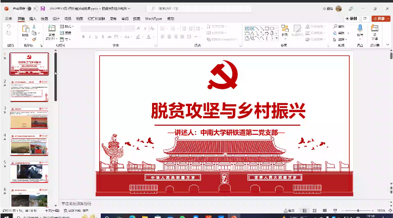 李鑫海同志围绕脱贫攻坚主题,介绍了十八大以来我国农村扶贫工作的开展情况。其中十八大报告把脱贫攻坚纳入“五位一体”和“四个全面”,标志着扶贫攻坚全面打响;十九大报告将精准扶贫列入决胜全面建成小康社会三大攻坚战;二十大报告提出全面推进乡村振兴。最后结合自身在河北省保定市阜平县支教的所见所闻,生动形象地介绍了著名革命老区阜平县脱贫攻坚的艰辛历程和取得的巨大成就,以及乡村振兴的发展蓝图。