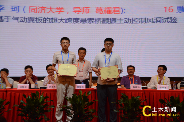 此次会议,共有500余名来自美国、日本及全国各地风工程研究领域的专家学者和研究生代表出席。其中出席第四届全国风工程研究生论坛的代表297名,来自国内36所高校或科研院所。两个会议参会代表最多的单位是同济大学,代表总数61名,其中教师代表15名、研究生代表46名;其次,是beat365英国官方网站,代表总数44名,其中教师代表8名、研究生代表36名;第三,西南交通大学,代表总数39名,其中教师代表9名、研究生代表30名;代表人数20名以上的单位还有4个:湖南大学(代表总数33名,其中教师代表10名、研究生代表23名)、哈尔滨工业大学(代表总数26名,其中教师代表10名、研究生代表16名)、湖南科技大学(代表总数25名,其中教师代表8名、研究生代表17名)和石家庄铁道大学(代表总数21名,其中教师代表7名、研究生代表14名)等。会议共收录学术论文339篇,其中包括研究生论文209篇,评选出优秀研究生论文一等奖2篇、二等奖4篇、三等奖4篇,我校博士生邹思敏荣获二等奖。大会还邀请了日本东京工业大学田村哲朗教授(Prof. Tetsuro Tamura)、同济大学朱乐东教授、浙江大学楼文娟教授、西南交通大学李明水教授、石家庄铁道大学刘庆宽教授和湖南大学华旭刚教授等六位国内外著名风工程专家作了大会报告。