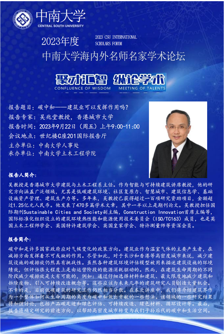 学术讲座预告:碳中和——建筑业可以发挥作用吗?