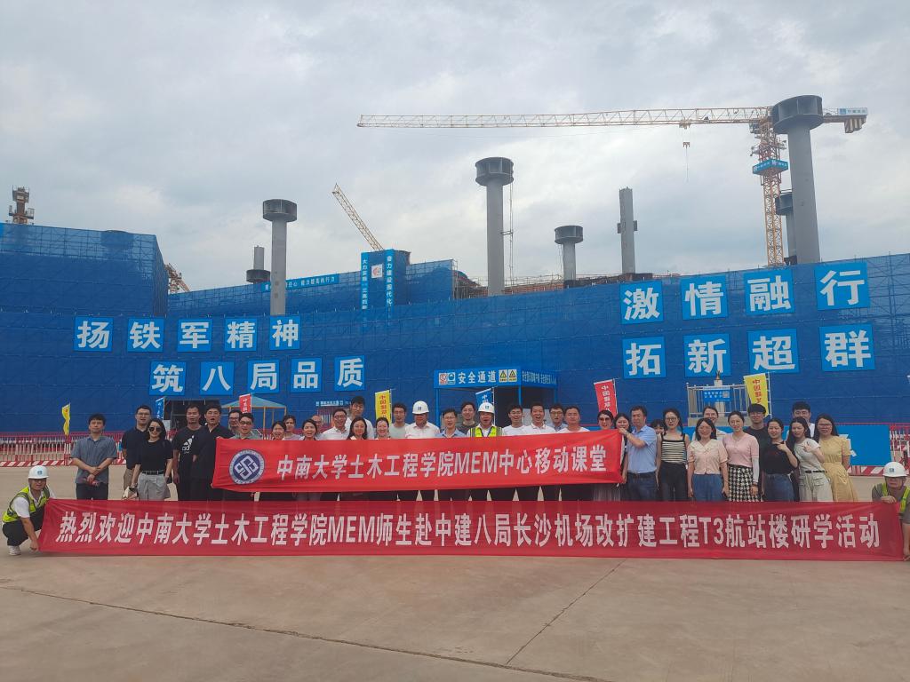 2023年7月8日,在beat365英国官方网站单智老师和刘梦婷老师的带领下,MEM2021级和MEM2022级同学前往长沙机场改扩建工程T3航站楼项目,开展参观研学活动。同学们参观了智慧展厅、安全体验中心、观光塔等,深入了解了施工过程中的各项细节和措施,亲身感受了智慧建造、绿色建造、数字建造等技术在项目实施中的运用。