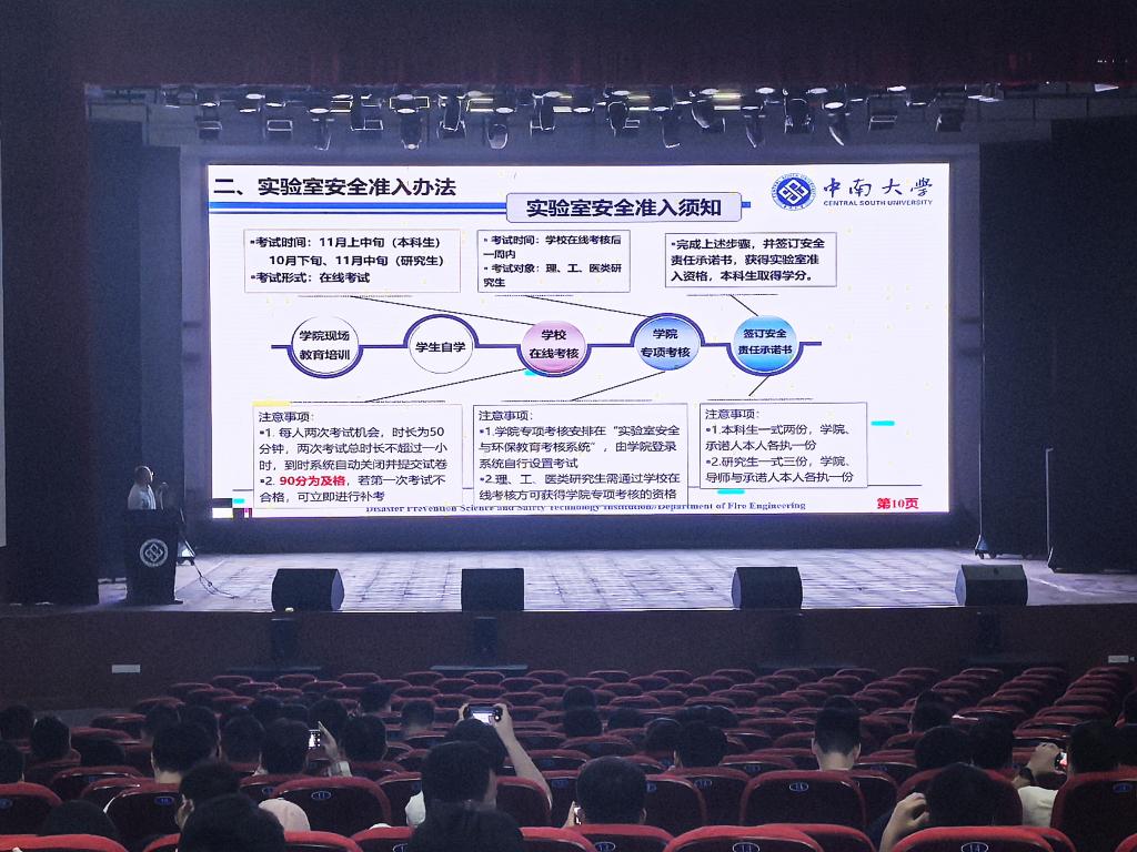 beat365英国官方网站消防工程系颜龙老师为新生讲授《beat365英国官方网站实验室管理制度和安全知识》,颜龙老师在授课中从实验室安全的重要性、实验室安全准入办法和高校实验室安全因素以及实验室安全环保基础知识等方面进行了细致系统的讲解,通过高校实验室事故案例深刻说明了保障实验室安全的重要性。