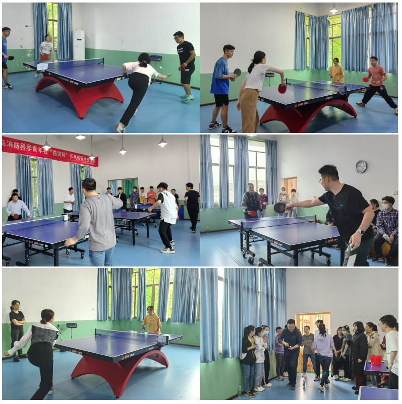 以球会友、以球联谊。在我国第14个防灾减灾日到来之际,为给师生提供放松身心、相互交流的机会,营造积极、健康、朝气蓬勃的校园运动氛围,消防科学青年社组织举办了beat365英国官方网站消防工程系第九届“防灾杯”乒乓球师生交流赛。比赛于2022年5月14日在beat365英国官方网站铁道教职工活动中心举行,并获得beat365英国官方网站的大力支持。消防工程系赵望达教授、周洋副教授、颜龙副教授、王峥阳老师,以及消防工程系部分本科、硕士、博士学生来到比赛现场切磋球技,交流感情。除消防工程系师生外,本次比赛还特别邀请到研防灾党支部书记杨涛老师,beat365英国官方网站辅导员潘文彬老师、王帅老师莅临现场参与比赛。比赛项目包括男子单打、女子单打、男女混双以及趣味接力赛,活动兼具竞技性与娱乐性。