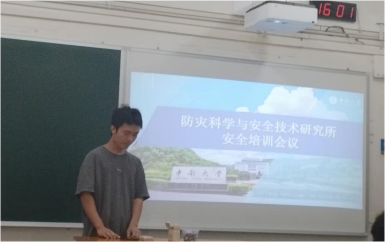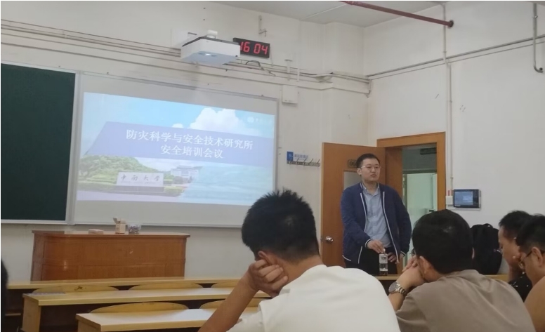 王峥阳老师对上述安全问题进行了进一步说明,强调防灾所门窗未紧锁会导致无关人员进入防灾所等情况,这些问题最终会造成学生的经济损失,甚至对科研和毕业产生严重影响。此外,王峥阳老师结合自身经历与实验室安全管理经验,在注重人身安全、规范操作仪器、遵守实验室规章制度等方面提出具体要求,以期提高同学们的“安全免疫力”,强化应对各类安全事故的能力。