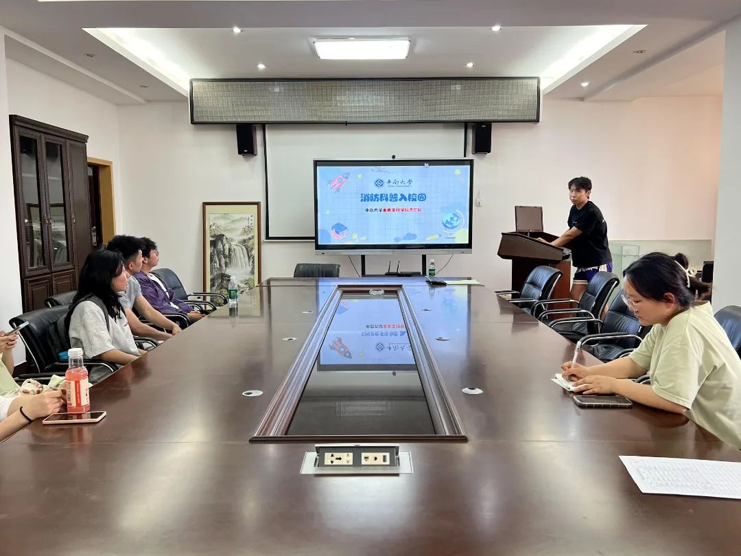 活动伊始,研究生王其江、赵九霄、苏少卿、吴秀科、梁蔻进行了消防安全知识科普讲解,内容涵盖火的本质、火灾预防、火灾逃生与自救互救等基础知识。讲解过程中,研究生结合实际案例,生动形象地向本科生传授了火灾应对技巧,并展示了消防科普的重要性。