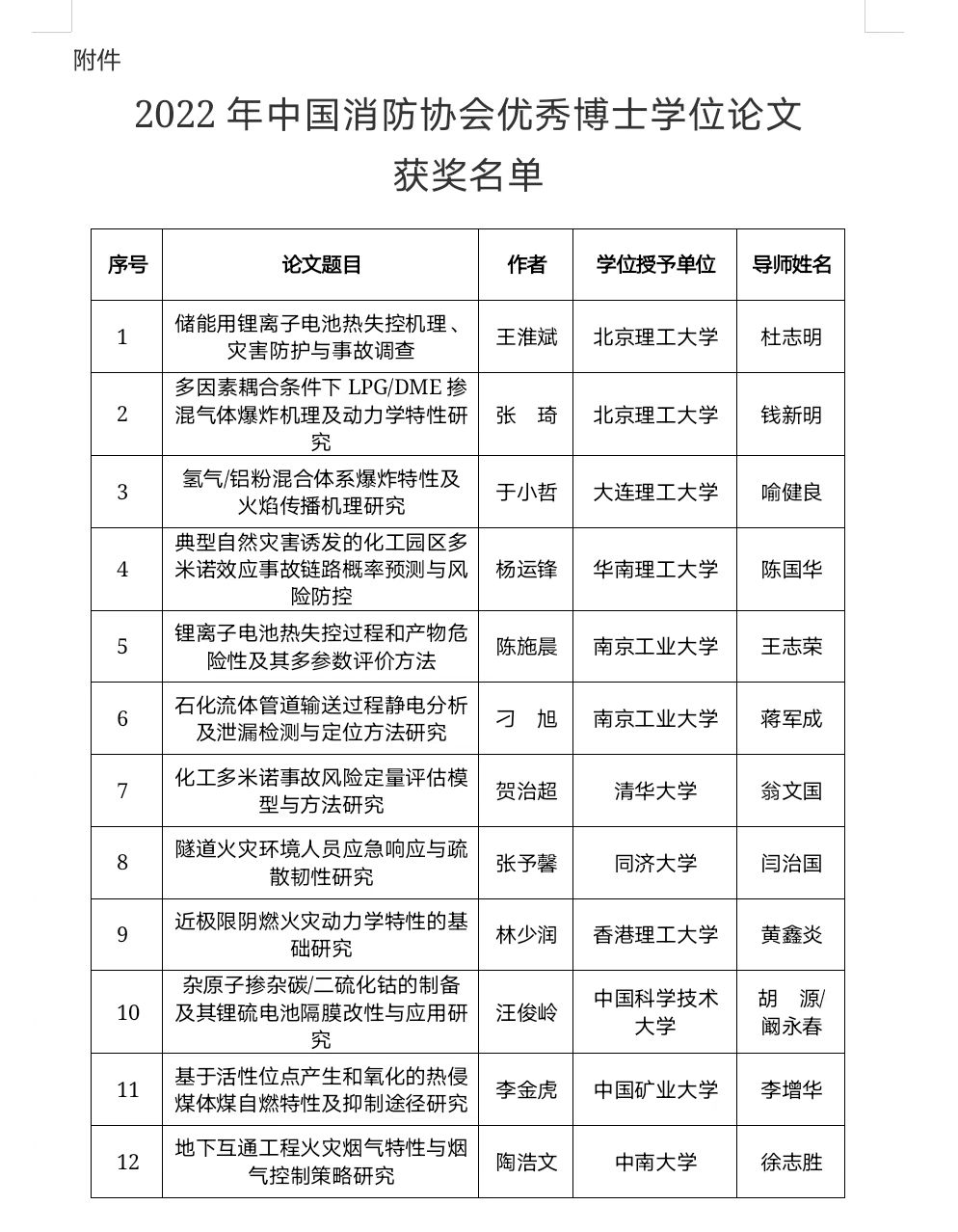beat365英国官方网站消防工程系博士论文获评2022年中国消防协会优秀博士学位论文