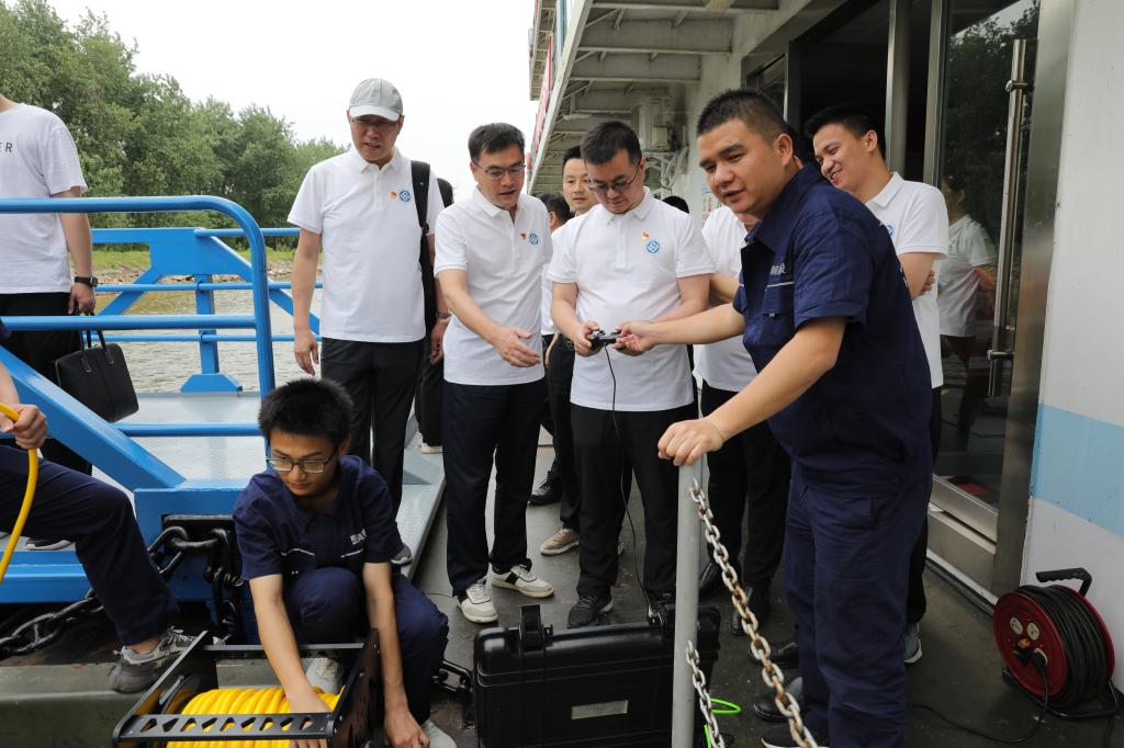 为深入推动学习贯彻习近平新时代中国特色社会主义思想主题教育走深走实,6月3日,beat365英国官方网站党委书记蒋琦玮带队前往长交集团兴联路大通道项目、湖南省航务公司省应急水上应急救援中心开展调研交流工作。