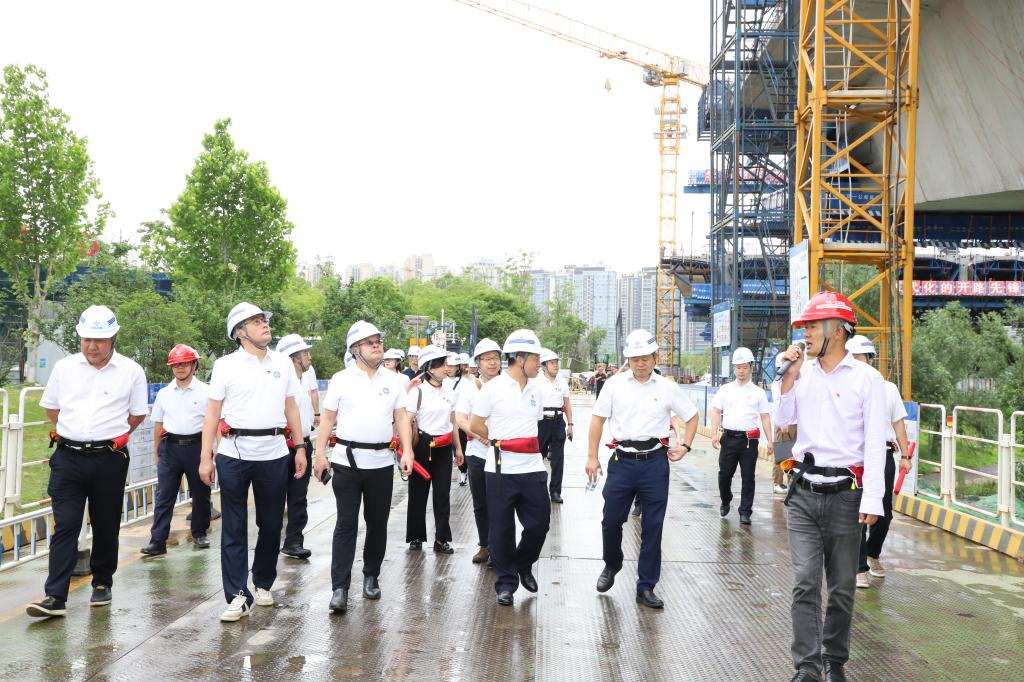 调研组一行参观兴联路大通道项目兴联路湘江特大桥施工现场,了解项目建设情况和施工过程中遇到的难题。