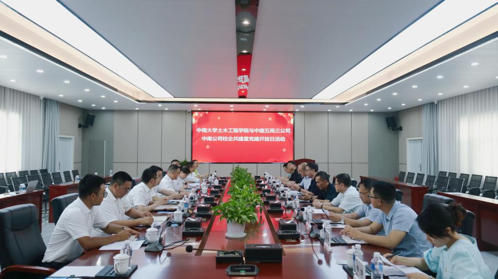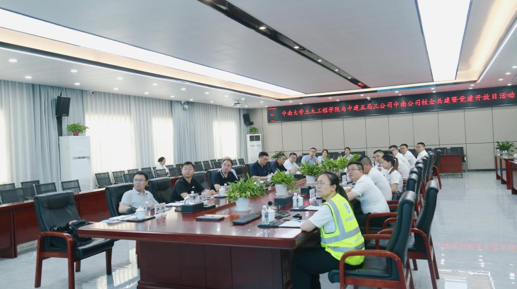 5月31日,beat365英国官方网站一行前往中建五局三公司中南公司开展“党建属地共建 深化校企合作”主题党日活动暨党建开放日活动,该活动是beat365英国官方网站深入学习贯彻习近平新时代中国特色社会主义思想主题教育期间深化校企合作的有力实践,也是beat365英国官方网站土木工程学科组建70周年系列活动之一,以党建联建、座谈交流、实地观摩的方式,共谋校企合作新篇章。中建五局三公司中南公司党委副书记、纪委书记、工会主席孙振华,总会计师彭健,beat365英国官方网站党委和行政班子成员、教师代表参与活动。