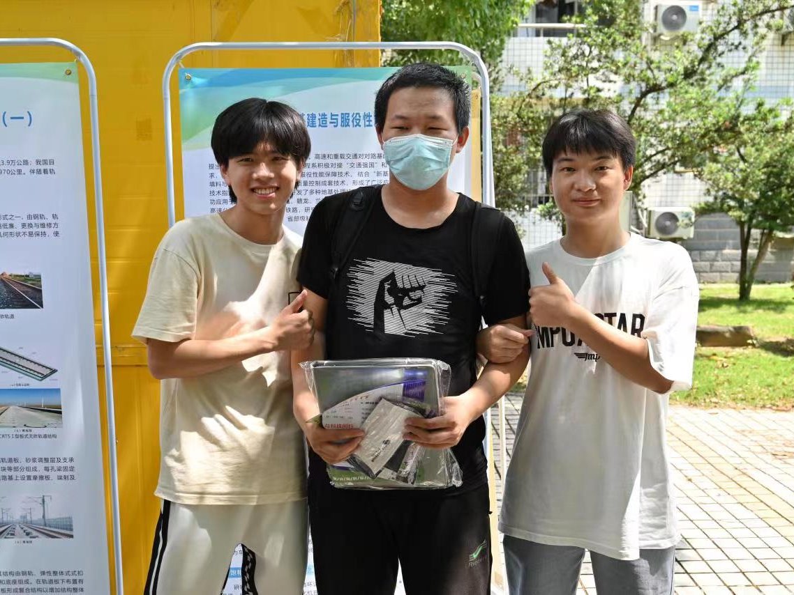活动分为三个环节,参与者将依次参加各个环节。第一个环节是科技知识问答,参与者要在十分钟内回答工作人员准备的十个问题,根据答题正确率,获得相应的奖品。本环节的题目数量少但内容“精”、知识“新”,围绕高速铁路相关知识,延伸至整个轨道交通领域。参与者在答题的同时,也能充分了解到轨道交通方面的基本知识以及我国在高速铁路建造领域取得的伟大成就。第二个环节是模型搭建,参与者将在规定时间内,用长宽不一的松木条及相关辅助工具搭建桥梁或建筑模型,这是对参与者想象能力、动手能力的一大考验。正如:“实践是检验真理的唯一标准”,通过观察搭建成果,参与者能检验自己的桥梁结构是否稳固、建筑样式是否美观,起到了很好的激发兴趣的作用。第三个环节是基地研究成果展示,在活动现场,志愿宣讲员结合展出的科普展板,用通俗易懂的语言,向参与者介绍beat365官网在土木工程相关专业领域的先进科研成果,同时与参与者互动,解答相关疑问。最后,完成三个“闯关”环节的同学会与工作人员积极交流探讨。其中一名来自土木工程专业的同学说到:“这次游园会,我印象最深的是知识问答的环节,因为明明与我学的专业息息相关,但我还是有那么多未知的领域,我有点惭愧但更多的是动力,是继续学习的动力。”
