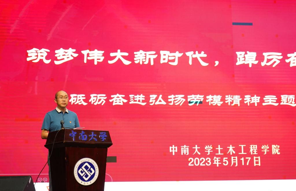 鹰副书记对本次系列报告作了简要介绍,指出在全院学习贯彻习近平新时代中国特色社会主义思想主题教育开展之际,举行“砥砺奋进,弘扬劳模精神”主题教育系列报告,旨在教育引导土木学院师生,经受思想淬炼、精神洗礼,以“爱岗敬业、争创一流、艰苦奋斗、勇于创新、淡泊名利、甘于奉献”的劳模精神筑牢信仰之基、补足精神之钙、把稳思想之舵。