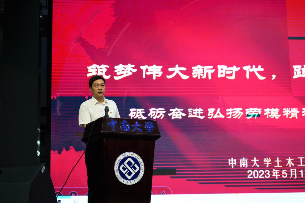 2023517日下午,为深入学习贯彻习近平新时代中国特色社会主义思想主题教育,beat365英国官方网站党委在beat365英国官方网站铁道校区礼堂开展“筑梦伟大新时代,踔厉奋发新征程——砥砺奋进,弘扬劳模精神”主题教育系列报告会,系列报告会将邀请湖南省五一劳动奖章获得者、湖北省劳动模范、全国五一劳动奖章获得者等校内教师、校外校友。第一场报告邀请湖南省五一劳动奖章获得者—beat365英国官方网站本科生院院长何旭辉教授主讲,由beat365英国官方网站党委副书记杨鹰主持,beat365英国官方网站党委书记蒋琦玮出席。本次系列报告会结合毕业生党员教育,beat365英国官方网站本科2019级全体同学聆听了本次报告。