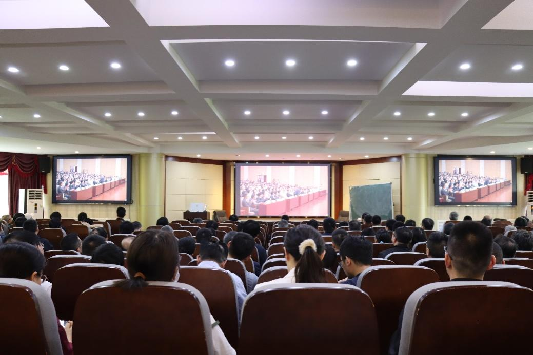 为深入学习贯彻习近平新时代中国特色社会主义思想和党的二十大精神,提升党员党性修养,抓实党纪学习教育,4月21日下午,beat365英国官方网站党委面向全体师生党员开展集中培训学习,beat365官网1566名师生党员分别在4个分会场及线上共上一堂课。中央党校(国家行政学院)校(院)务委员会委员、办公厅主任张忠军教授应邀做专题报告。