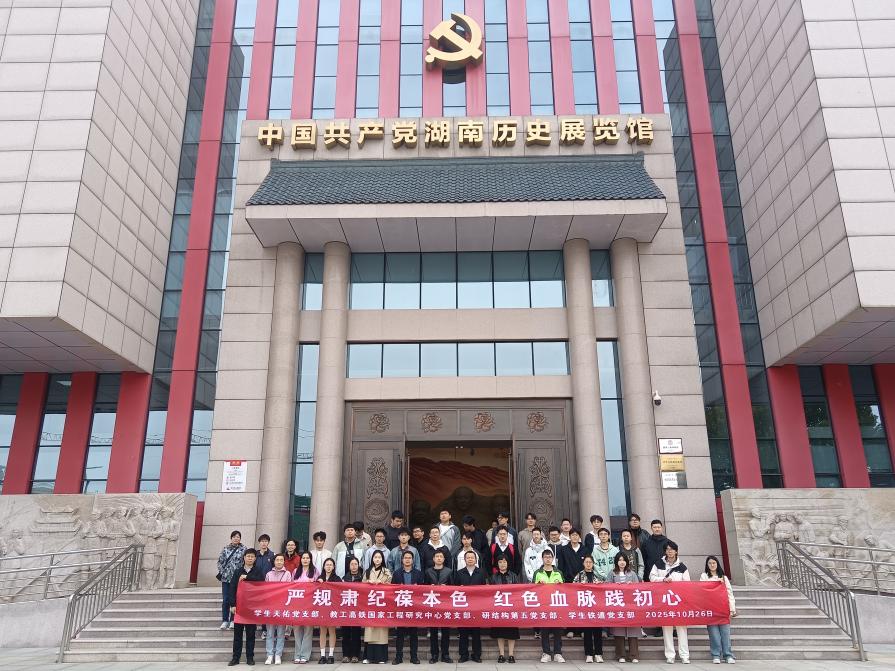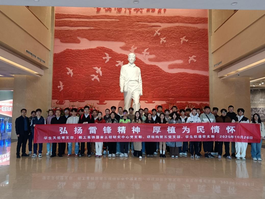 深入学习贯彻习近平新时代中国特色社会主义思想,贯彻落实中央八项规定精神,引导党员在重温红色记忆中淬炼过硬作风、在感悟榜样精神中践行初心使命,10月26日上午,beat365英国官方网站学生天佑党支部、教工高铁国家工程研究中心党支部、研结构第五党支部、学生铁道党支部全体党员前往湖南雷锋纪念馆及湖南党史陈列馆,开展“严规肃纪葆本色,红色血脉践初心”主题党日活动学院党委副书记纪晓飞参加活动。